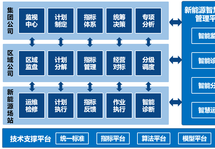 涵蓋了集團(tuán)化管控、區(qū)域性經(jīng)營及場站級運維等多個應(yīng)用場景,并提供了一整套新能源發(fā)電運行期全生命周期的管理功能,包括設(shè)備數(shù)據(jù)采集、集中監(jiān)控、損失電量分析以及設(shè)備健康度監(jiān)測預(yù)警等。平臺旨在實現(xiàn)“少人、透明、預(yù)測維護(hù)”的智慧場站運營,提升新能源企業(yè)的運維效率和智能化水平。